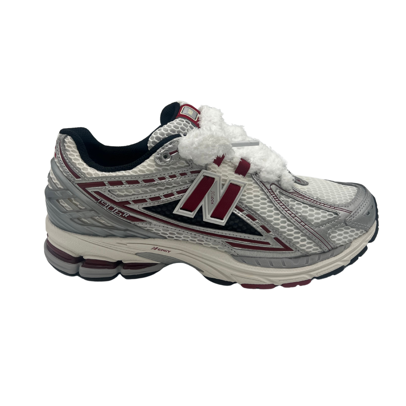 New balance 1906r red crimson with fluffy laces.